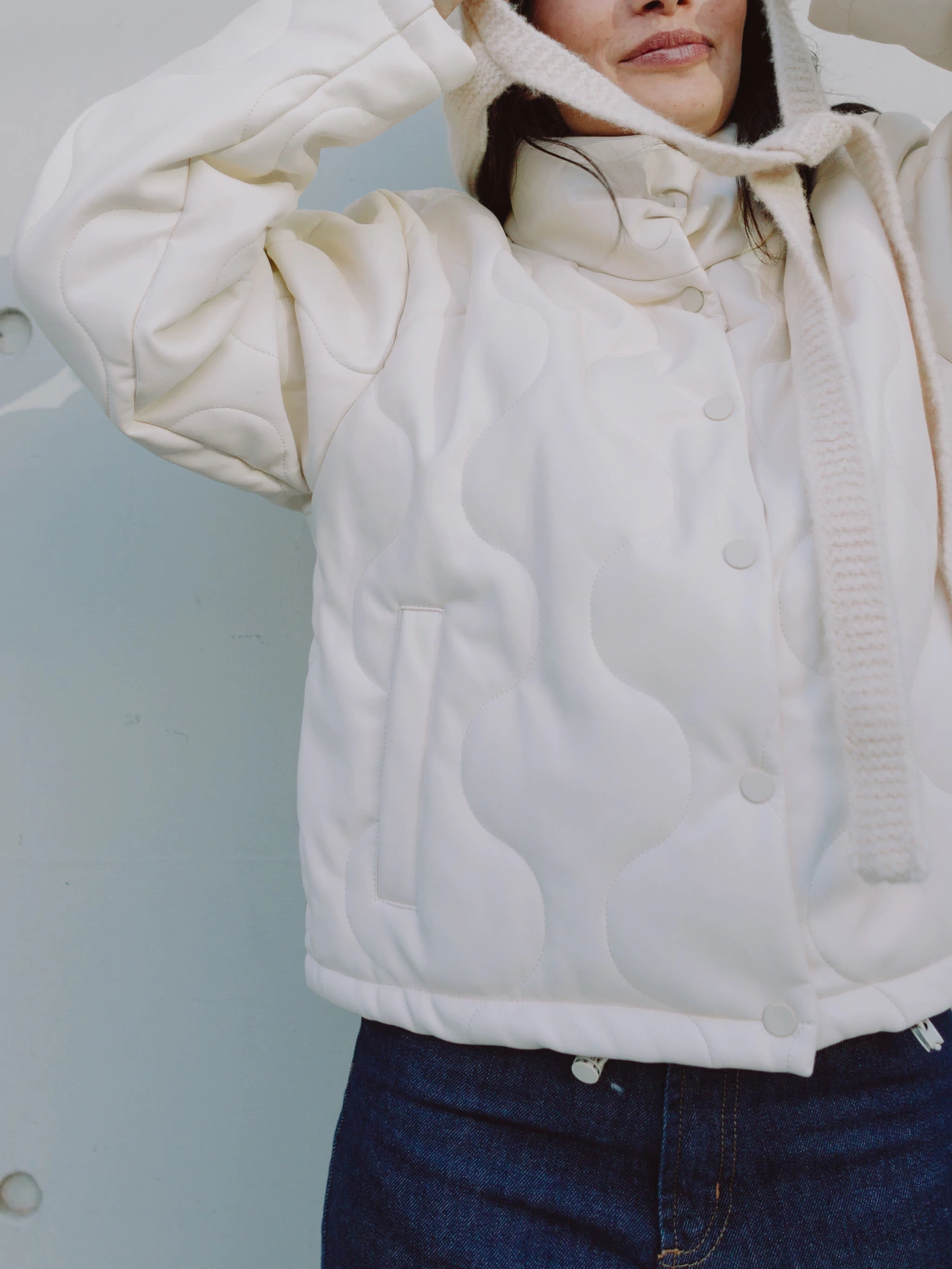 La campera Anya esta hecha de eco cuero premium. En Veste trabajamos con los mejores materiales del mercado y este modelo no es la excepción. Tiene un cierre total mediante botones que van del cuello a la cintura, su corte es oversize y tiene un tramado de semicirculos. Posee elasticos en la cintura para ajustar como más te guste.